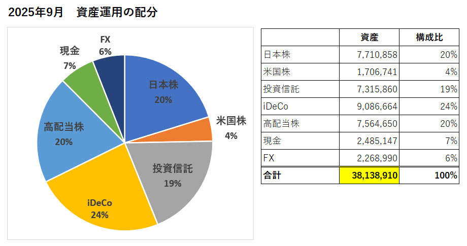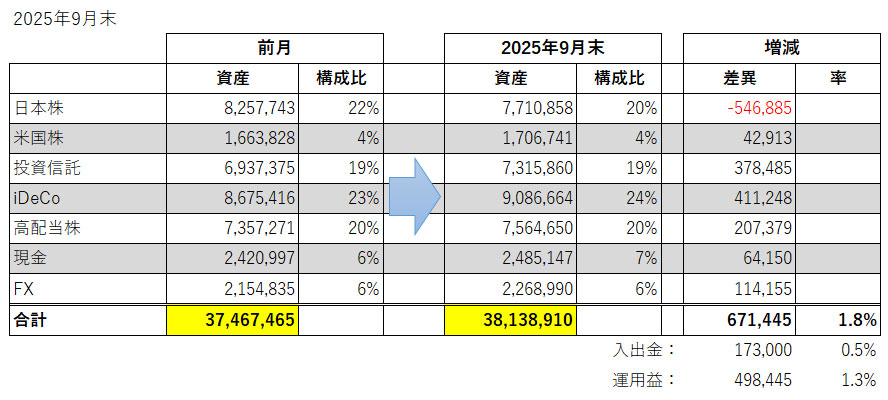 年始から3,108万円⇒3,813万円となり、内運用益率は+11.4%となっています。
