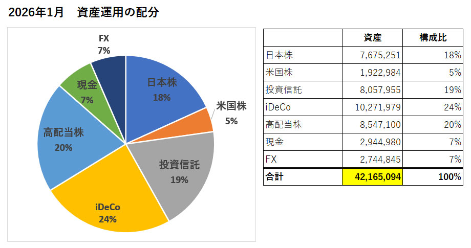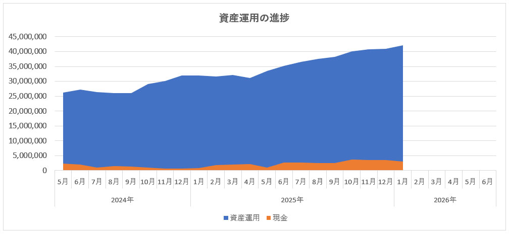 年始から4,099万円⇒4,216万円となり、運用益率は+2.6%となっています。