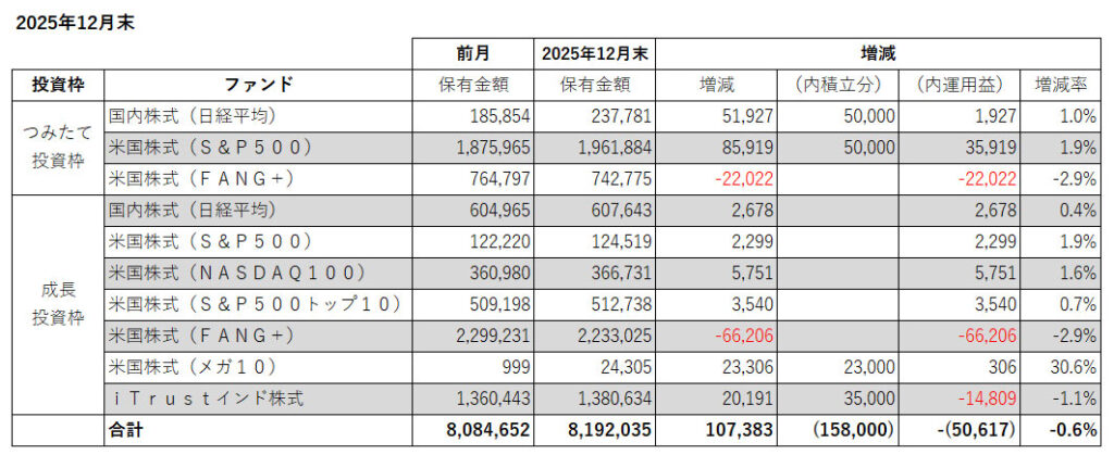 2025年12月末時点の新NISA運用実績を報告します。